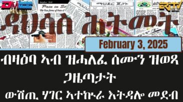 ዳህሳስ ሕትመት – ብዛዕባ ኣብ ዝሓለፈ ሰሙን ዝወጻ ጋዜጣታት ውሽጢ ሃገር ኣተኲራ እትዳሎ መደብ – February 3, 2025 – ERi-TV Unauthorized distribution of ERi-TV content is strictly...
