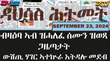 ዳህሳስ ሕትመት – ብዛዕባ ኣብ ዝሓለፈ ሰሙን ዝወጻ ጋዜጣታት ውሽጢ ሃገር ኣተኲራ እትዳሎ መደብ – September 23, 2024 – ERi-TV Unauthorized distribution of ERi-TV content is strictly...